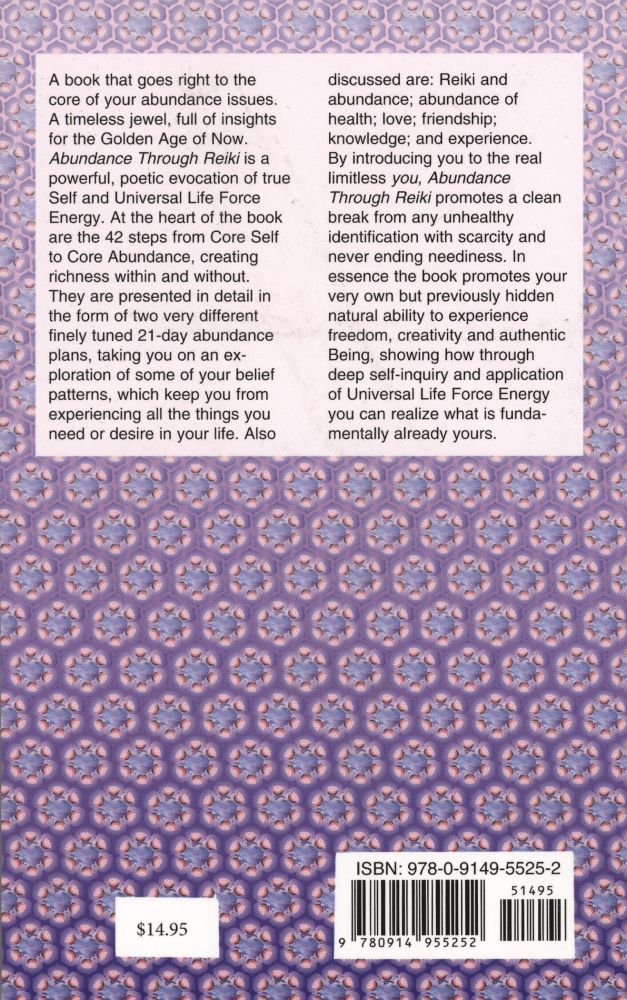 A book that goes right to the core of your abundance issues. At the heart of the book are 42 steps from Core Self to Core Abundance creating richness within and without. They are presented in detail in the form of two very different finely tuned 21-day abundance plans taking you on an exploration of some of your belief patterns which keep you from experiencing all the things you need or desire in your life.