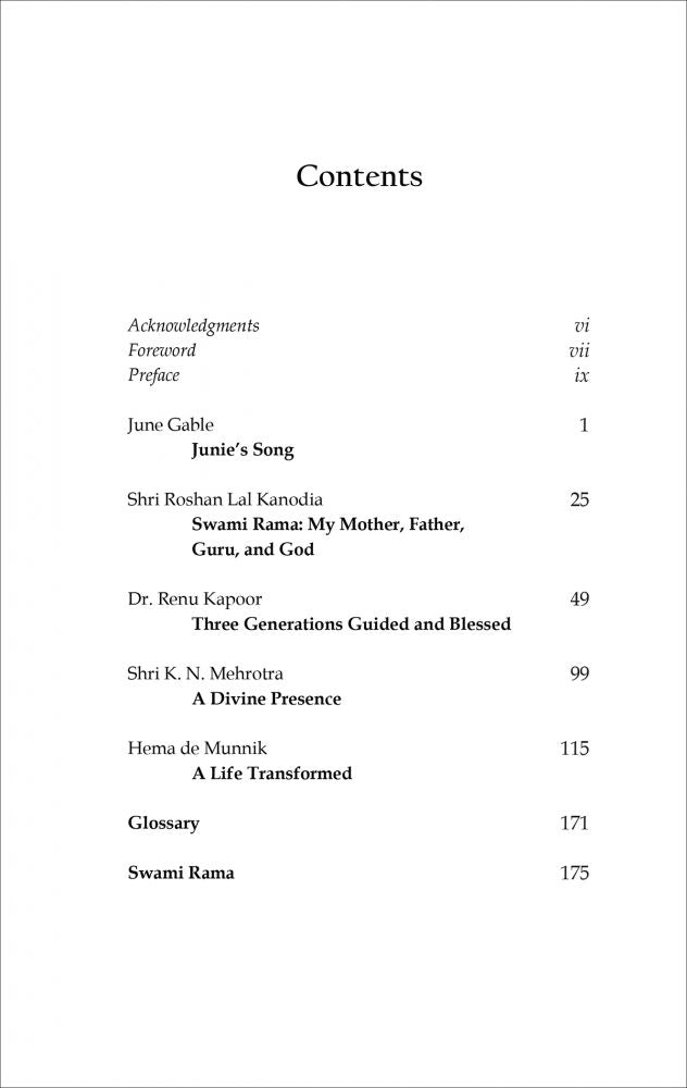 This volume has five contributors of diverse nationalities and backgrounds but who share a common bond of great reverence and love for the Himalayan master Swami Rama. They approached him at different times for different reasons and with different aspirations. Despite these differences in age background temperament and nationality they found in Swami Rama a true friend profound philosopher and compassionate guide. The differences in the narrators and their narratives serve an important purpose - the opportunity to view Swami Rama from many different perspectives from which one can try to construct for oneself a composite portrait of Swami Rama the multi-faceted phenomenon who graced our lives. - From teh Preface by Dr. Prakash Keshaviah Editor of the series