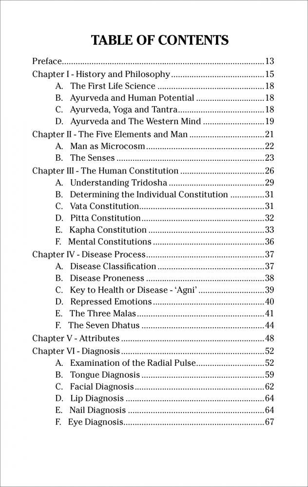 For the first time a book is available which clearly explains the principles and practical applications of Ayurveda the oldest healing system in the world. This beautifully illustrated text thoroughly explains history & philosophy basic principles diagnostic techniques treatment diet medicinal usage of kitchen herbs & spices first aid food aid food antidotes and much more.