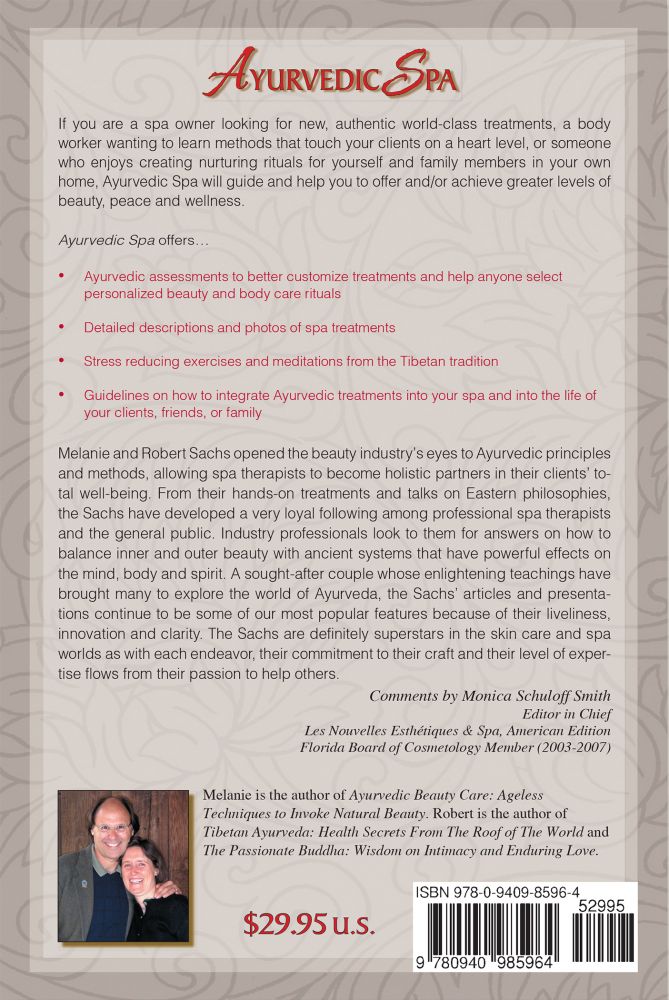 If you are a spa owner looking for new authentic world class treatments a body worker wanting to learn methods that touch your clients on a heart level or someone who enjoys creating nurturing rituals for yourself and family in your home Ayurvedic Spa will guide and help you to offer and/or achieve greater levels of beauty peace and wellness.