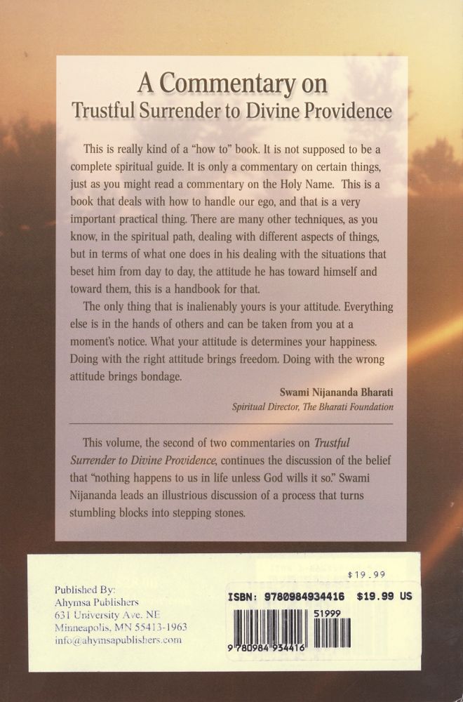 This volume the second of two commentaries on Trustful Surrender to Divine Providence continues the discussion of the belief that nothing happens to us in life unless God wills it so. Swami Nijananda leads an illustrious discussion of a process that turns stumbling blocks into stepping stones.