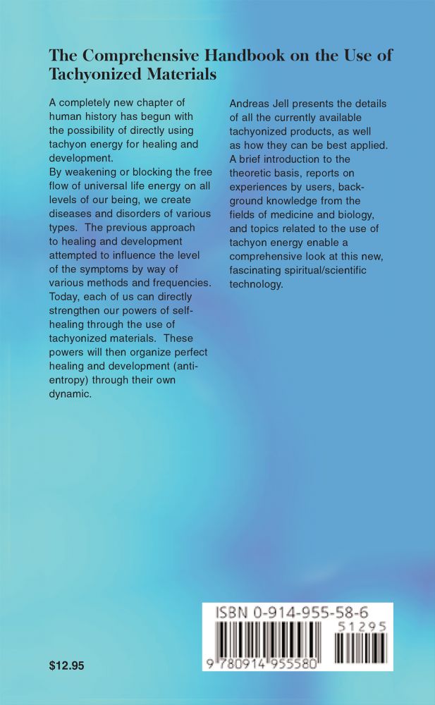 Today you can directly strengthen your powers of self-healing by using tachyonized materials. These powers will then organize perfect healing and development anti-entropy through their own dynamic. A brief introduction to the theoretic basis reports on experiences by users background knowledge from the fields of medicine and biology and topics related to the use of tachyon energy provide a comprehensive look at this new fascinating spiritual/scientific technology.