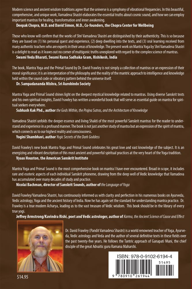 Perhaps the most detailed book available on the yogic meaning of prime seed bija and shakti mantras and the letters of the Sanskrit alphabet along with their application for body mind and spirit. It unfolds special secrets of how to use mantra with pranayama and many esoteric meditation practices including the Mantra Purusha. It examines the usage of mantras in all the main branches of Yoga Hatha Raja Bhakti Jnana and the traditions of Tantra Veda Ayurveda Jyotish and Vastu as well as relative to Kundalini and the chakras and major Hindu deities. The fruit of forty years of study by one of the most respected western Vedic teachers the book is an excellent yet concise reference guide useful for years to come.