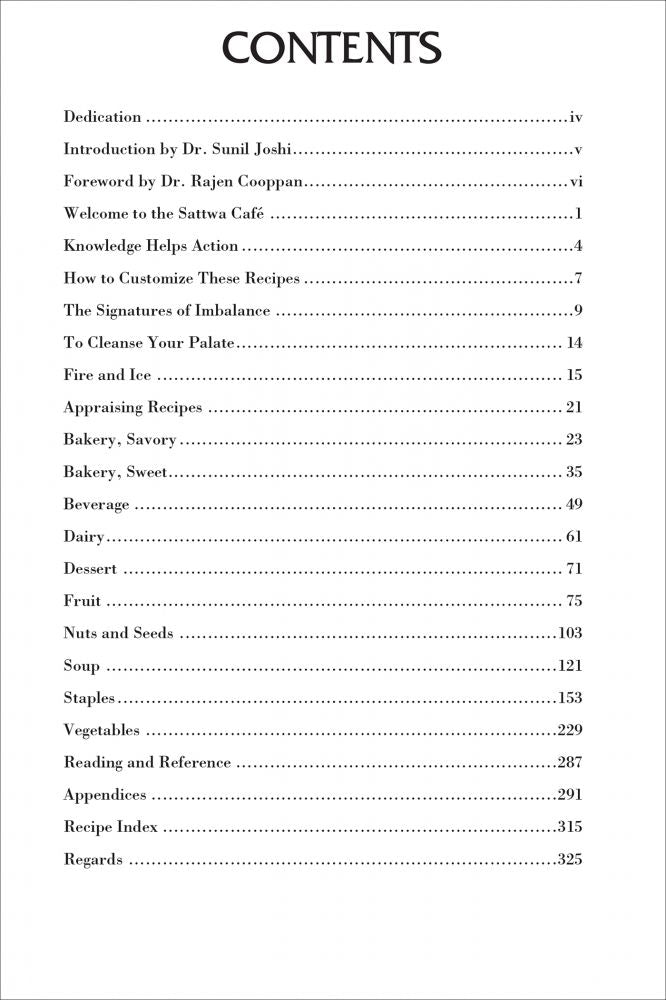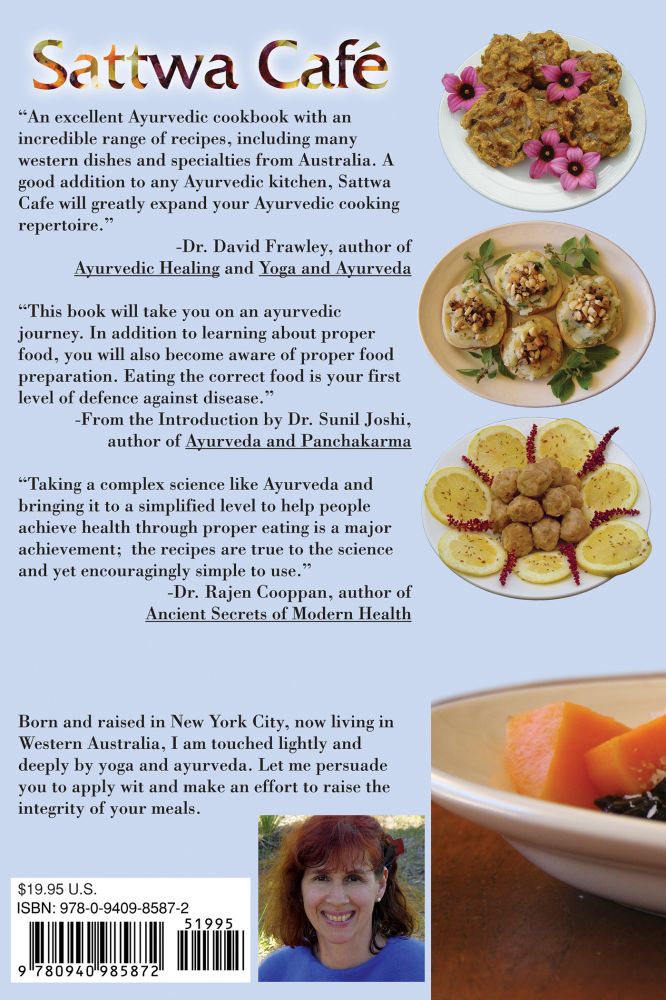 An excellent Ayurvedic cookbook with an incredible range of recipes including many western dishes and specialties from Australia. A good addition to any Ayurvedic kitchen Sattwa Cafe will greatly expand your Ayurvedic cooking repertoire. This book will take you on an ayurvedic journey. In addition to learning about proper food you will also become aware of proper food preparation. Eating the correct food is your first level of defense against disease.