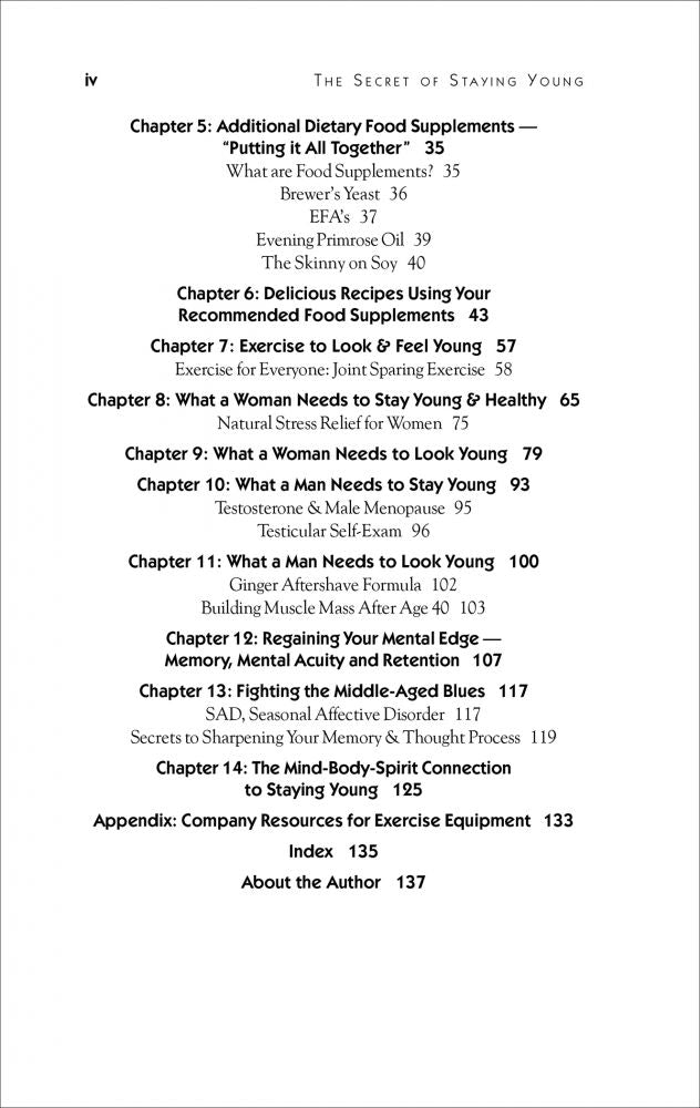 The Secret of Staying Young provides the most up-to-date comprehensive information including vitamin deficiencies in relation to Alzheimer's Disease coping with menopause memory nutrients that really work foods for your mood and mental edge nutritional supplements to make you look and feel young secret spa treatments for the home and much more.